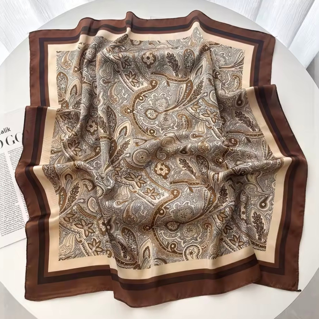 SIENNA CLASSIC to apaszka inspirowana klasycznym wzorem paisley, który od lat symbolizuje styl i wyrafinowanie. Subtelne przejścia kolorystyczne oraz satynowe wykończenie nadają jej luksusowy, ale harmonijny charakter.