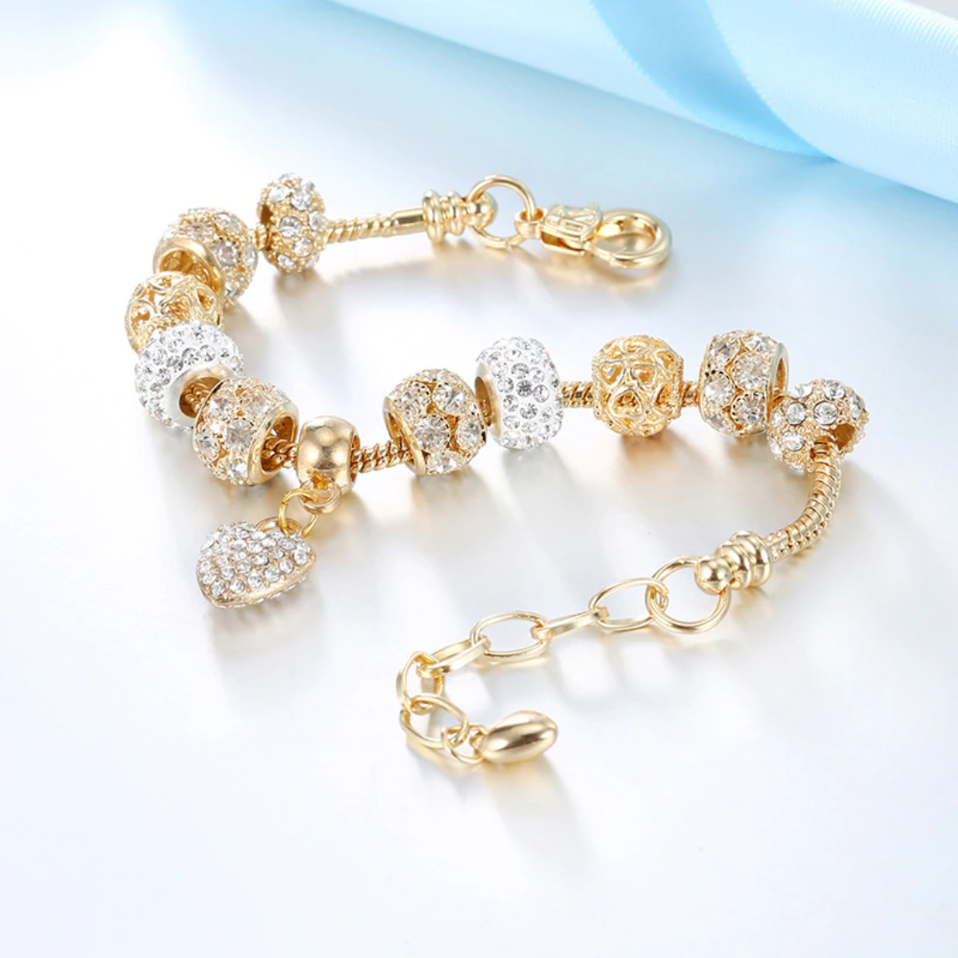 Bransoletka Heart Cascade to połączenie klasycznej elegancji z kobiecą subtelnością. Kompozycja dekoracyjnych koralików o różnych fakturach i delikatnie połyskujących kryształach tworzy harmonijną całość, która pięknie układa się na nadgarstku.