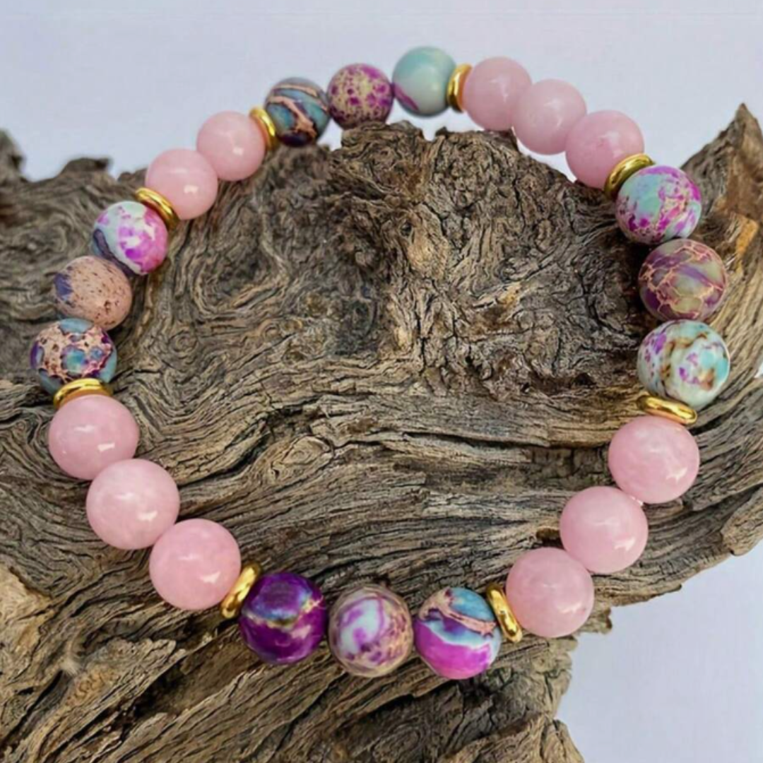 Bransoletka LOVE HARMONY to subtelne połączenie naturalnych kamieni, które tworzą kompozycję pełną delikatności, spokoju i kobiecej energii. Różowy kwarc różowy symbolizuje miłość i harmonię emocjonalną, a imperial stone wnosi równowagę oraz wewnętrzną siłę.