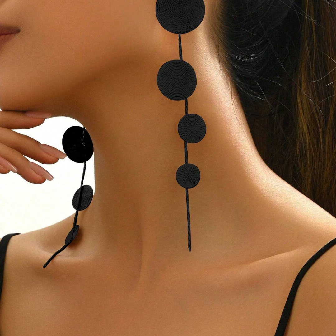 Nowoczesne, minimalistyczne i niezwykle efektowne — kolczyki Black Cascade Circles to propozycja idealna dla kobiet, które kochają styl w odsłonie noir.