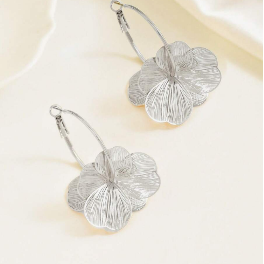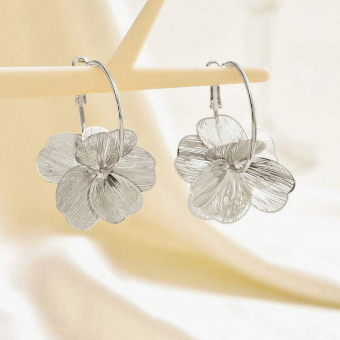 Delikatne kolczyki w formie subtelnego kwiatu zawieszonego na cienkiej srebrnej obręczy. Ryflowana struktura płatków pięknie odbija światło, nadając biżuterii lekkości i elegancji. FLORIA HOOP Silver to idealny wybór dla kobiet ceniących minimalistyczną formę z romantycznym akcentem.