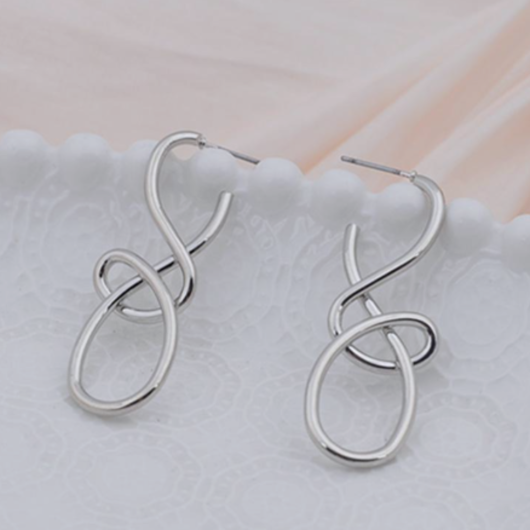 Srebrne kolczyki „Infinity Loop” zachwycają płynną linią i dynamicznym, przeplatającym się kształtem inspirowanym symbolem nieskończoności.