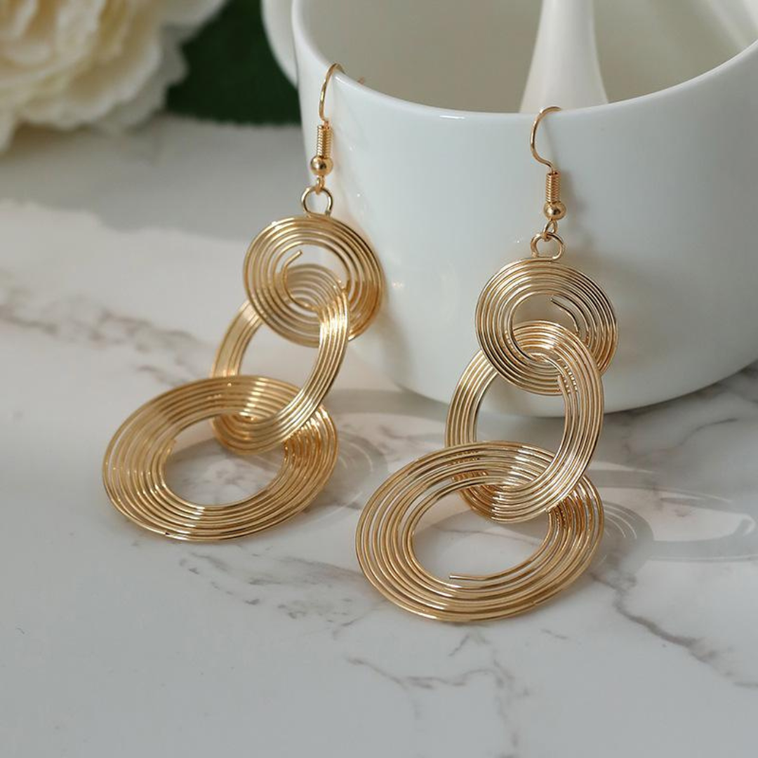 - kolczyki złote damskie, kolczyki spiralne złote, kolczyki statement gold, eleganckie kolczyki, biżuteria damska złota, nowoczesne kolczyki, kolczyki geometryczne
