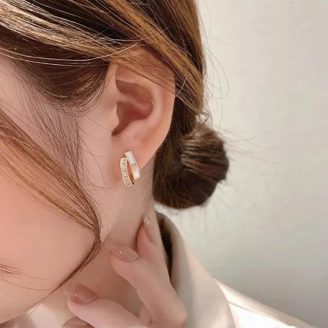 Subtelne, a jednocześnie niezwykle stylowe kolczyki, które zachwycają nowoczesną formą i delikatnym luksusem. Połączenie gładkiej masy perłowej z precyzyjnie osadzonymi, drobnymi kryształami tworzy harmonijną kompozycję – idealną na co dzień i na wyjątkowe okazje.