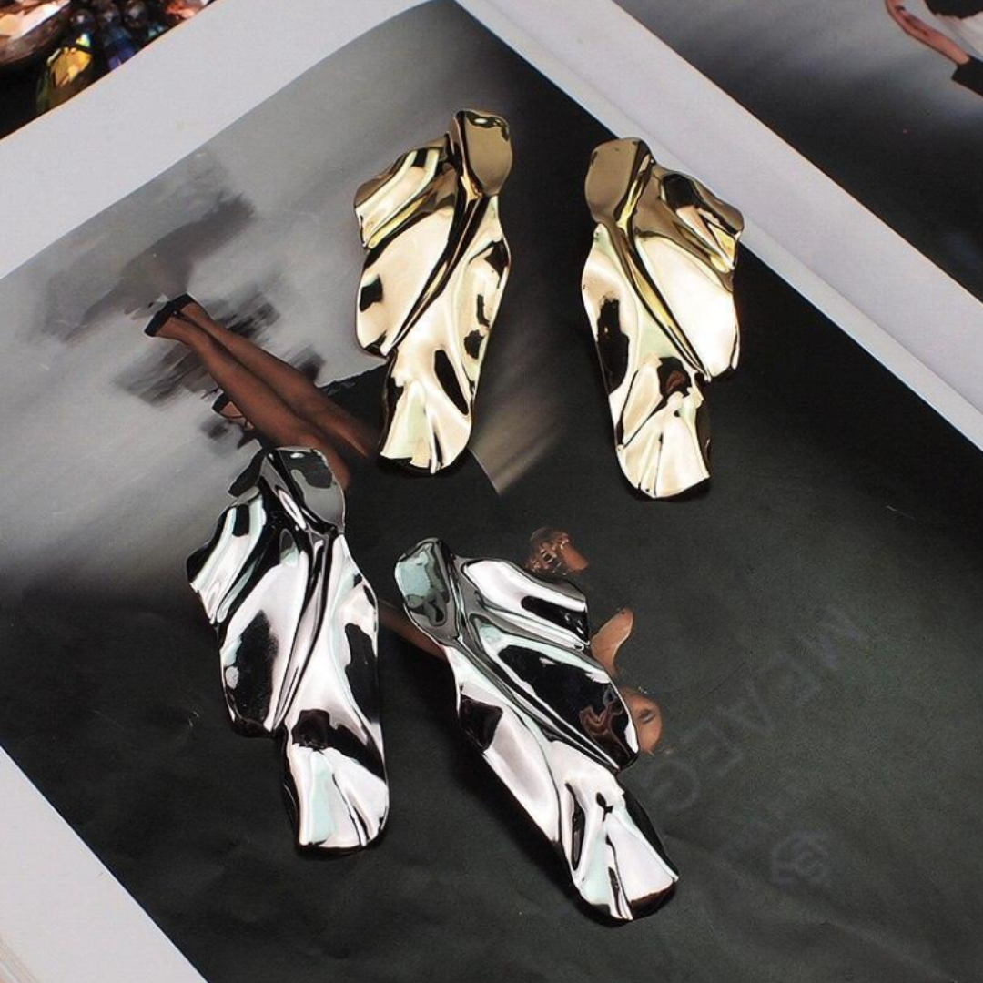 Spektakularne złote kolczyki o nieregularnym, rzeźbiarskim kształcie to propozycja dla kobiet, które uwielbiają biżuterię o wyjątkowym charakterze. Ich falowana, lustrzana powierzchnia pięknie odbija światło, tworząc efekt nowoczesnej, artystycznej biżuterii premium.