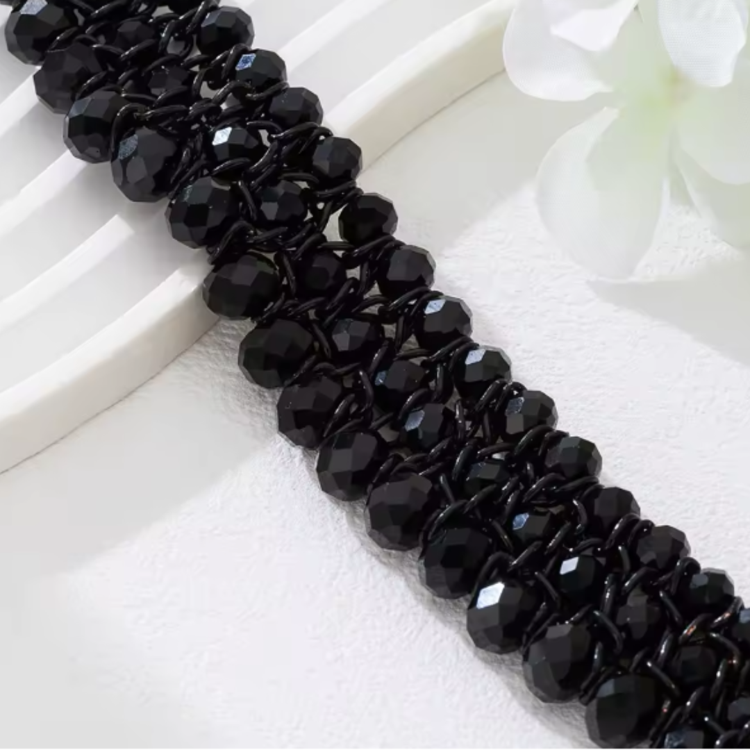 Kolia NOIR AMORE ONYX to wyrazista biżuteria o luksusowym charakterze. Gęsto układane elementy z czarnego onyksu tworzą efekt głębi i subtelnego blasku, podkreślając dekolt i nadając stylizacji wyjątkowej elegancji.