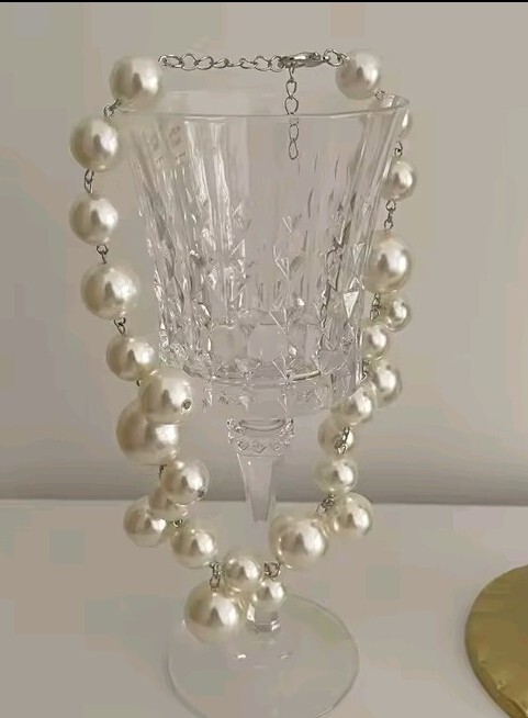 Wyjątkowy naszyjnik ślubny wykonany z efektownych, dużych pereł, który stanowi elegancki i wyrazisty akcent stylizacji. Klasyczna forma została przełamana nowoczesnym układem pereł o różnych wielkościach, dzięki czemu biżuteria prezentuje się luksusowo i niezwykle stylowo.