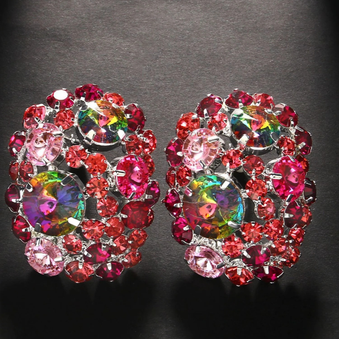 - duże klipsy z czerwonymi i różowymi kryształami