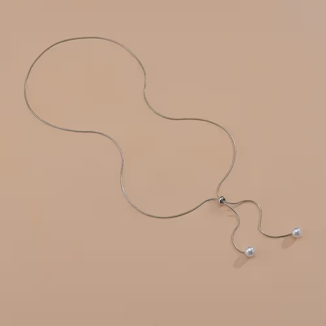 PEARL WHISPER to naszyjnik, który mówi szeptem – o kobiecości, delikatności i wyrafinowanym smaku. Cienki, subtelny łańcuszek w kolorze srebra został uzupełniony drobnymi perełkami, które poruszają się lekko przy każdym ruchu, tworząc efekt naturalnej lekkości.