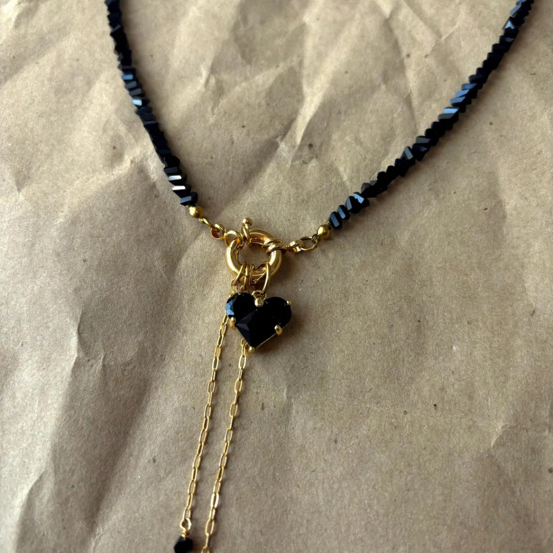 Naszyjnik z drobnymi onyxami Noir Lumen Heartfall Necklace
