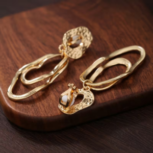 Kolczyki Aurea Flow to biżuteria inspirowana płynnym ruchem i organiczną formą. Podwójne, nieregularne owalne linie tworzą lekki, nowoczesny kształt, który pięknie pracuje przy każdym ruchu głowy.