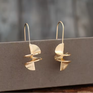Efektowne kolczyki w formie rozkwitającego kwiatu, wykonane z delikatnych, złoconych płatków o subtelnej, ryflowanej strukturze. Ich przestrzenna forma przyciąga spojrzenia i nadaje całości wyjątkowo luksusowego charakteru, podkreślając kobiecość i klasę.